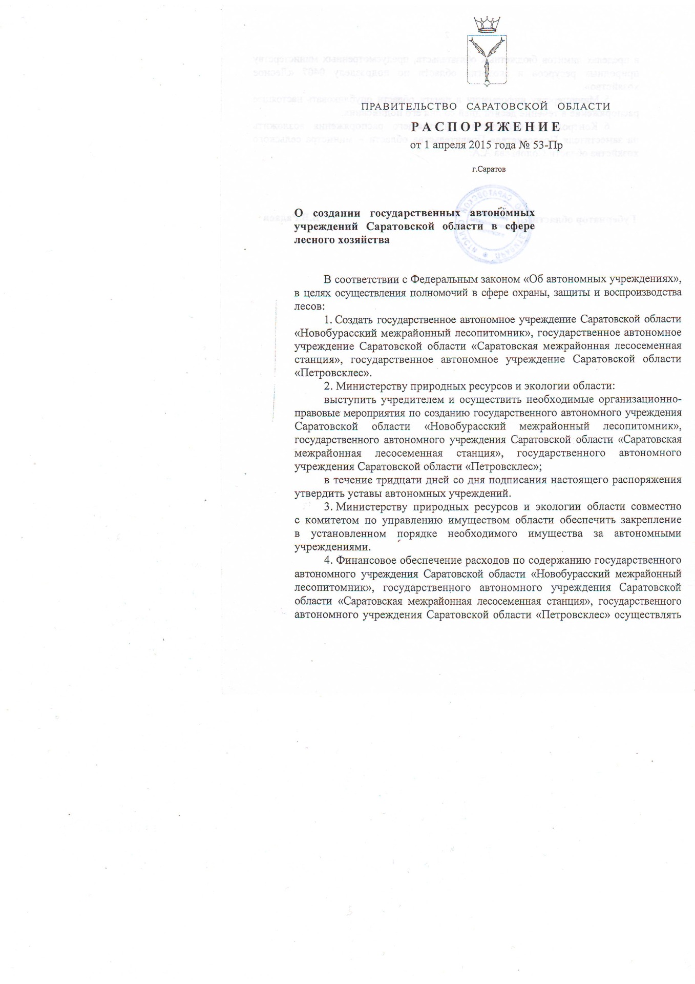 | Распоряжение о создании государственных автономных организаций Саратовской области в сфере лесного хозяйства | Файл | |||